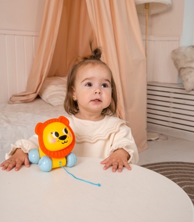 Το Παιχνίδι Ώθησης και Έλξης Λιοντάρι προσκαλεί το παιδί σε ένα ατελείωτο ταξίδι γνώσης και ανακάλυψης. Το παιχνίδι μπορεί να τραβηχτεί από σχοινάκι ακολουθώντας τους μικρούς μας φίλους στις βόλτες τους. Διαθέτοντας κεφάλι που κινείται, το Παιχνίδι Ώθησης και Έλξης Λιοντάρι παρακινεί το παιδί να μπουσουλήσει και να περπατήσει, να ολοκληρώσει ασκήσεις συντονισμού και να μάθει τις κατευθύνσεις. Διατίθεται σε τρία σχέδια: λάμα, λιοντάρι και ελάφι.