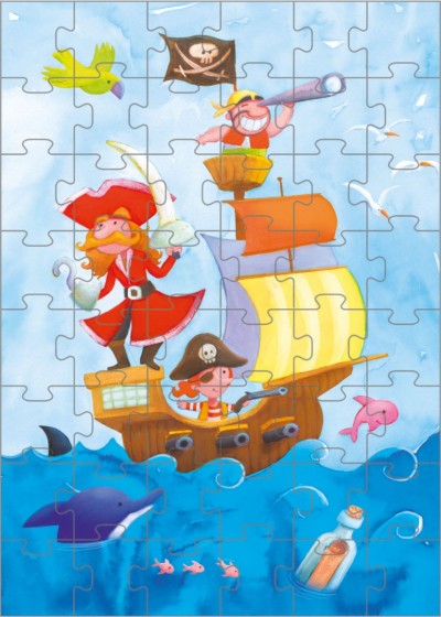 Το παζλ είναι εμπνευσμένο από τον κόσμο της θάλασσας και απεικονίζει πειρατές πάνω στο πλοίο τους! Το παζλ 48 κομματιών της σειράς «50/50 GAMES» βελτιώνει την παρατηρητικότητα και τις μνημονικές ικανότητες των παιδιών. Βοηθά τον συντονισμό χεριών και ματιών, την αναγνώριση σχημάτων και τις κινητικές ικανότητες των παιδιών. Το παιχνίδι είναι σχεδιασμένο από Έλληνες εικονογράφους. Επιπλέον, για την κατασκευή του έχει χρησιμοποιηθεί χοντρό χαρτόνι καλής ποιότητας από ανακυκλωμένο χαρτόνι κατά 70% και είναι ανακυκλώσιμο. Τα κομμάτια του παζλ περιέχονται σε ένα πρωτότυπα σχηματισμένο κουτί με το όμορφο και εντυπωσιακό σχέδιο των πειρατών πάνω στο πλοίο τους. Επίσης, μπορείτε να χρησιμοποιήσετε το κουτί και ως αποθηκευτικό χώρο!