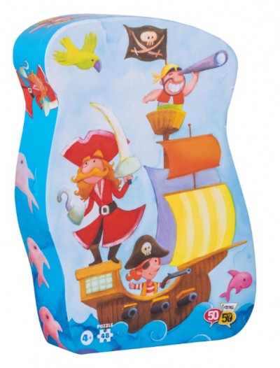 Το παζλ είναι εμπνευσμένο από τον κόσμο της θάλασσας και απεικονίζει πειρατές πάνω στο πλοίο τους! Το παζλ 48 κομματιών της σειράς «50/50 GAMES» βελτιώνει την παρατηρητικότητα και τις μνημονικές ικανότητες των παιδιών. Βοηθά τον συντονισμό χεριών και ματιών, την αναγνώριση σχημάτων και τις κινητικές ικανότητες των παιδιών. Το παιχνίδι είναι σχεδιασμένο από Έλληνες εικονογράφους. Επιπλέον, για την κατασκευή του έχει χρησιμοποιηθεί χοντρό χαρτόνι καλής ποιότητας από ανακυκλωμένο χαρτόνι κατά 70% και είναι ανακυκλώσιμο. Τα κομμάτια του παζλ περιέχονται σε ένα πρωτότυπα σχηματισμένο κουτί με το όμορφο και εντυπωσιακό σχέδιο των πειρατών πάνω στο πλοίο τους. Επίσης, μπορείτε να χρησιμοποιήσετε το κουτί και ως αποθηκευτικό χώρο!