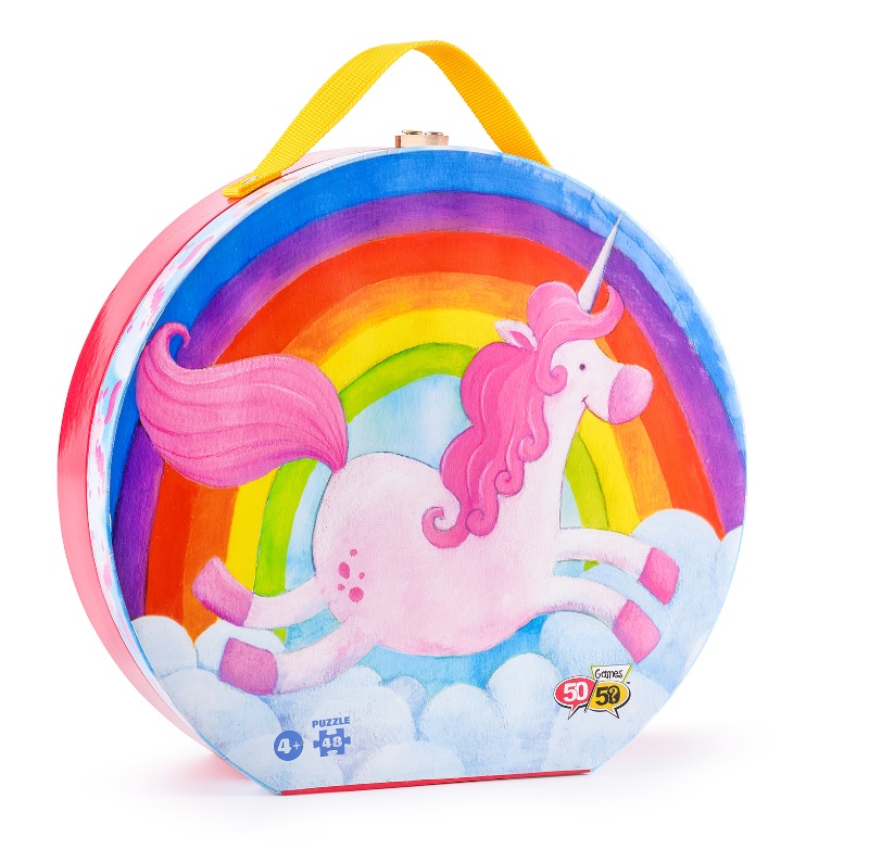 Το παζλ είναι εμπνευσμένο από τον κόσμο των παραμυθιών και απεικονίζει έναν μονόκερο! Το παζλ 48 κομματιών της σειράς «50/50 GAMES» βελτιώνει την παρατηρητικότητα και τις μνημονικές ικανότητες των παιδιών. Βοηθά τον συντονισμό χεριών και ματιών, την αναγνώριση σχημάτων και τις κινητικές ικανότητες των παιδιών. Το παιχνίδι είναι σχεδιασμένο από Έλληνες εικονογράφους. Επιπλέον, για την κατασκευή του έχει χρησιμοποιηθεί χοντρό χαρτόνι καλής ποιότητας από ανακυκλωμένο χαρτόνι κατά 70% και είναι ανακυκλώσιμο. Τα κομμάτια του παζλ περιέχονται σε ένα πρωτότυπα σχηματισμένο κουτί με το όμορφο και εντυπωσιακό σχέδιο ενός ροζ μονόκερου. Επίσης, μπορείτε να χρησιμοποιήσετε το κουτί και ως αποθηκευτικό χώρο!