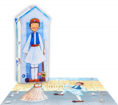 Το παζλ είναι εμπνευσμένο από την ελληνική ιστορία και απεικονίζει έναν Τσολιά και μια Αμαλία! Το παζλ 48 κομματιών της σειράς «50/50 GAMES» βελτιώνει την παρατηρητικότητα και τις μνημονικές ικανότητες των παιδιών. Βοηθά τον συντονισμό χεριών και ματιών, την αναγνώριση σχημάτων και τις κινητικές ικανότητες των παιδιών. Το παιχνίδι είναι σχεδιασμένο από Έλληνες εικονογράφους. Επιπλέον, για την κατασκευή του έχει χρησιμοποιηθεί χοντρό χαρτόνι καλής ποιότητας από ανακυκλωμένο χαρτόνι κατά 70% και είναι ανακυκλώσιμο. Τα κομμάτια του παζλ περιέχονται σε ένα πρωτότυπα σχηματισμένο κουτί με το όμορφο και εντυπωσιακό σχέδιο του Τσολιά. Επίσης, μπορείτε να χρησιμοποιήσετε το κουτί και ως αποθηκευτικό χώρο!